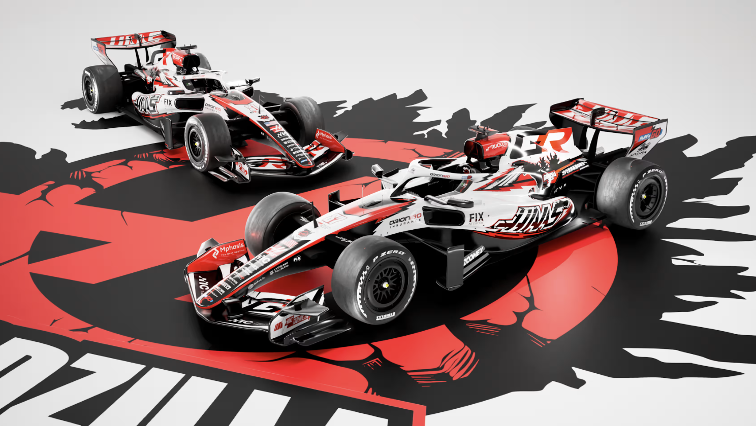 HAAS F1 Team Japan livery inspired by the Godzilla marking the launch of its new partnership with Toho Co., Ltd.